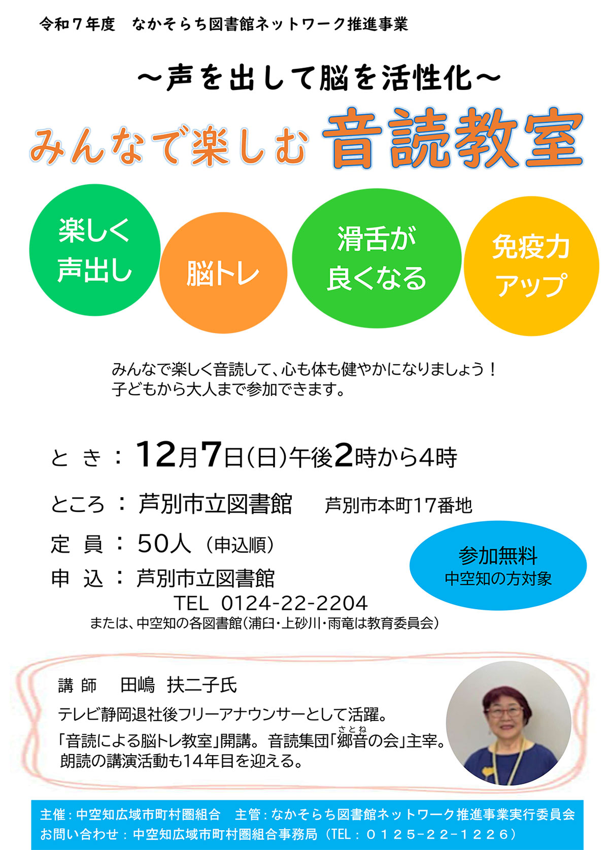 ~声を出して脳を活性化~『みんなで楽しむ 音読教室』を開催いたします